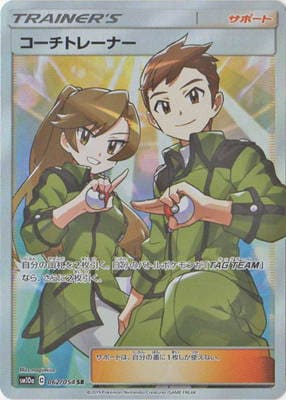 コーチトレーナー コーチトレーナー SM10a 062 / 054 イラストレーター nagimiso サポート 自分の山札を2枚引く。自分のバトルポケモンが「TAG TEAM」なら、さらに2枚引く。 サポートは、自分の番に1枚しか使えない。