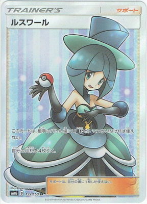 ルスワール ルスワール SM8b 159 / 150 イラストレーター Kagemaru Himeno サポート このカードは、相手のバトル場に1進化ポケモンがいなければ使えない。 自分の山札を4枚引く。 サポートは、自分の番に1枚しか使えない。