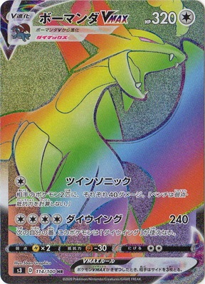 VMAX HP 320 タイプ ワザ ツインソニック 相手のポケモン2匹に、それぞれ40ダメージ。[ベンチは弱点・抵抗力を計算しない。] ダイウイング240 次の自分の番、このポケモンは「ダイウイング」が使えない。 特別なルール ポケモンVMAXがきぜつしたとき、相手はサイドを3枚とる。 弱点 抵抗力 にげる ×2 −30 進化 ボーマンダVMAX ボーマンダV