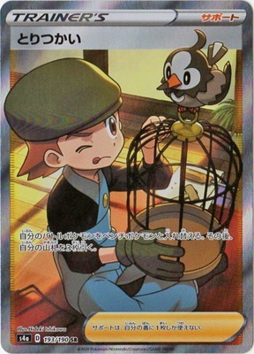 とりつかい とりつかい S4a 193 / 190 イラストレーター Hideki Ishikawa サポート 自分のバトルポケモンをベンチポケモンと入れ替える。その後、自分の山札を3枚引く。 サポートは、自分の番に1枚しか使えない。