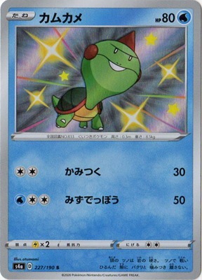 たね HP 80 タイプ ワザ かみつく30 みずでっぽう50 弱点 抵抗力 にげる ×2 -- 進化 カジリガメ カムカメ