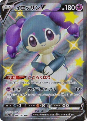 たね HP 180 タイプ 特性 こころくばり 自分の番に1回使える。自分のバトルポケモンのHPを「20」回復する。 ワザ サイコキネシス10+ 相手のバトルポケモンについているエネルギーの数×60ダメージ追加。 特別なルール ポケモンVがきぜつしたとき、相手はサイドを2枚とる。 弱点 抵抗力 にげる ×2 −30