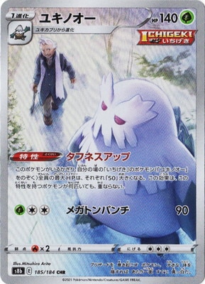 1 進化 HP 140 タイプ 特性 タフネスアップ このポケモンがいるかぎり、自分の場の「いちげき」のポケモン(「ユキノオー」をのぞく)全員の最大HPは、それぞれ「50」大きくなる。この効果は、この特性を持つポケモンが何匹いても、重ならない。 ワザ メガトンパンチ90 弱点 抵抗力 にげる ×2 -- 進化 ユキノオー ユキカブリ