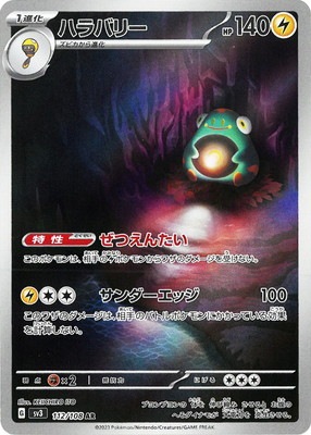 1 進化 HP 140 タイプ 特性 ぜつえんたい このポケモンは、相手のポケモンからワザのダメージを受けない。 ワザ サンダーエッジ100 このワザのダメージは、相手のバトルポケモンにかかっている効果を計算しない。 弱点 抵抗力 にげる ×2 -- 進化 ハラバリーex ハラバリー ズピカ