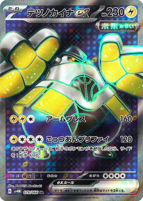 テツノカイナex テツノカイナex SV4M 079 / 066 イラストレーター PLANETA Mochizuki たね HP 230 タイプ ワザ アームプレス160 ごっつあんプリファイ120 このワザのダメージで、相手のポケモンがきぜつしたなら、サイドを1枚多くとる。 特別なルール ポケモンexがきぜつしたとき、相手はサイドを2枚とる。 弱点 抵抗力 にげる ×2 --