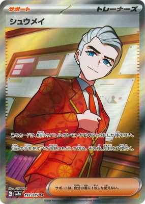 サポート このカードは、相手のバトルポケモンがどくのときにしか使えない。 自分の手札をすべて山札にもどして切る。その後、山札を7枚引く。 サポートは、自分の番に1枚しか使えない。